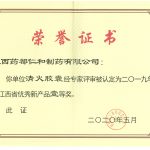 清火膠囊2019年度江西省優秀新產品證書