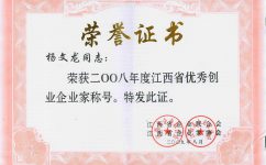 2008年度江西省優(yōu)秀創(chuàng)業(yè)企業(yè)家稱號