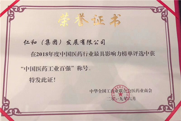 仁和集團榮膺2018年度中國醫藥工業百強 發布時間: 2023年04月23日 11:09:05 閱讀量: 7,427 下一篇:仁和集團榮獲國家藥監局藥品法制宣傳教育基地“先進單位”稱號上一篇:仁和藥業股份有限公司位列榜單中國中藥企業百強(第37位)
