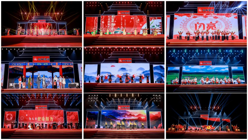 晚會以“科技賦能、文化聚力”為主線,通過歌舞、情景劇、合唱等多元形式,展現仁和集團在過去一年中的奮斗足跡與創新成果,擘畫新一年的發展藍圖。本次盛典在仁和863科技園及主會場同步進行新春氛圍營造,以紅色主題、傳統與現代元素相融合的布景,營造出喜慶祥和的節日氛圍,彰顯了仁和深厚企業文化底蘊。