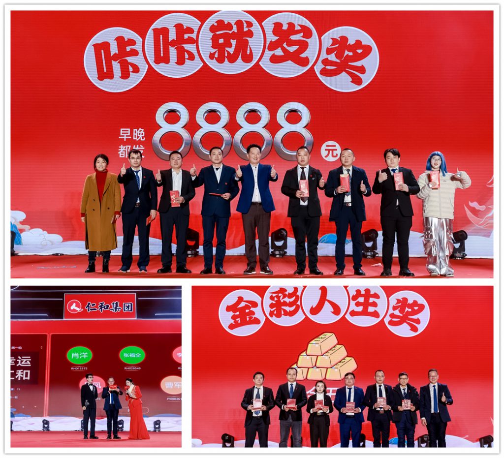 晚會延續了現場直播方式,與無法前來現場觀看的全國各地仁和員工一同分享新年的喜悅。晚會演出期間,楊總、楊瀟總、肖總為員工送出了“靈蛇送財”“幸運仁和”線上紅包及黃金實物獎勵,現場更有8個“8888”元現金大獎,晚會氣氛達到高潮。整場晚會以文化為媒、以科技為翼,不僅為員工呈現了一場視聽盛宴,更凝聚了全體仁和人“同心同行、共赴新程”的堅定信念。