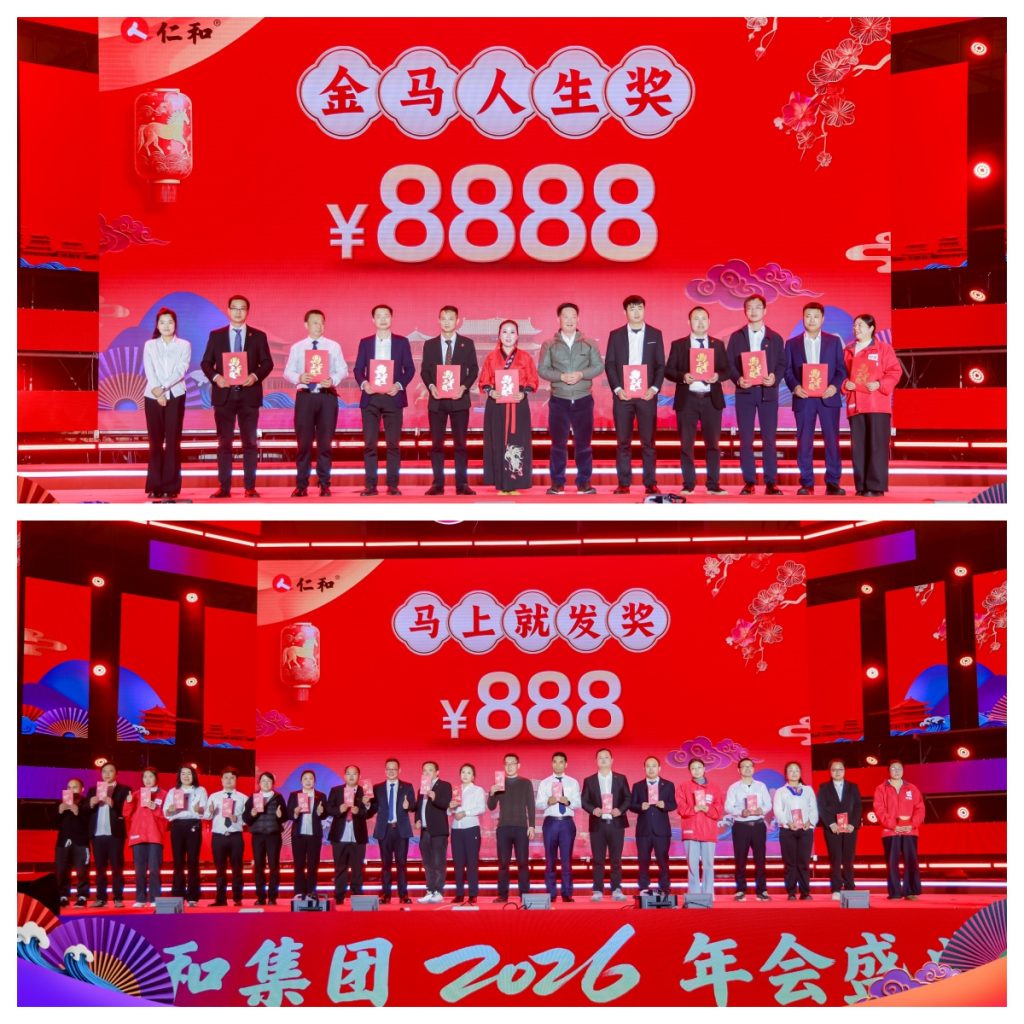 晚會延續(xù)了現(xiàn)場互動抽獎的傳統(tǒng),三輪抽獎讓驚喜與歡樂不斷升溫。第一輪紅包雨掀起全場熱浪;第二輪現(xiàn)場抽取20名幸運員工,每人獲得888元現(xiàn)金紅包,寓意“發(fā)發(fā)發(fā)”的好彩頭;第三輪終極大獎“金馬人生獎”由楊文龍董事長親自抽取,11名幸運兒,每人獲得8888元現(xiàn)金大獎,現(xiàn)場歡呼聲此起彼伏。一輪輪抽獎不僅是企業(yè)對員工的真情回饋,更象征著全體仁和人共享發(fā)展成果、同心共筑未來的美好愿景。
