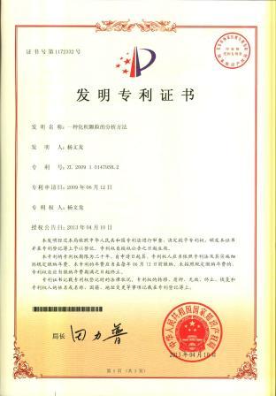 一種化積顆粒的分析方法發明專利證書 發布時間: 2019年12月18日 11:48:41 閱讀量: 10,031 下一篇:一種含有塞隆骨的藥物組合物及其制備方法和質量控制方法發明專利證書上一篇:一種口腔消毒衛生產品發明專利證書