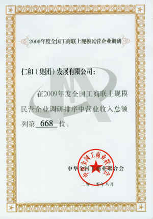 2009年度全國工商聯上規模民營企業調研排序中營業收入總額列668位 發布時間: 2019年12月18日 14:43:57 閱讀量: 8,673 下一篇:2008年度全國工商聯上規模民營企業調研排序中營業收入總額列第620位上一篇:2009年先進民營企業
