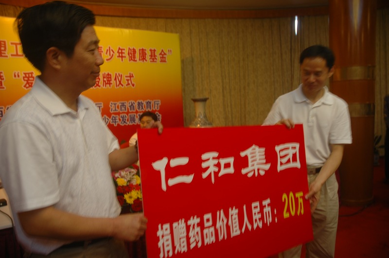 2007年7月12日,仁和集團向“生命希望工程—江西青少年健康基金”捐贈的20萬元藥品啟運儀式在集團公司總部舉行,集團副總經理、工會主席祝保華參加了儀式。據悉,這批藥品是運往宜春上高和景德鎮珠山等貧困地區的。