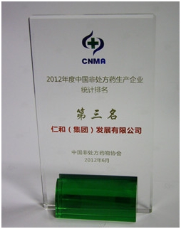 會議期間公布了2012年度中國OTC產(chǎn)業(yè)的相關統(tǒng)計排名。仁和集團位列2012年度中國非處方藥物生產(chǎn)企業(yè)第三名,仁和牌“優(yōu)卡丹”位列2012年度中國非處方藥化學藥兒科類產(chǎn)品第一名。