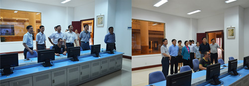 (圖為省藥監(jiān)局領(lǐng)導(dǎo)在仁和863科技園工業(yè)控制調(diào)度指揮中心視察)